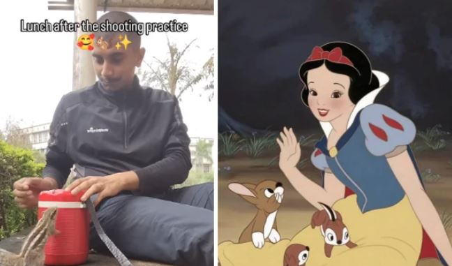 بھارت میں ایک شخص کا عام سا لنچ بریک اس وقت کسی ڈزنی فلم کے سین میں بدل گیا جب ایک نہایت بےخوف گلہری نے نہ صرف اس کے پاس آبیٹھنے کی جسارت کی بلکہ اس کا ٹفن کھولنے میں بھی مدد کرنے لگی۔انسٹاگرام صارف دیوانش بروآ کی جانب سے شیئر کی گئی اس دل موہ لینے والی ویڈیو نے سوشل میڈیا صارفین کو خوب متاثر کیا۔ ویڈیو میں نظر آنے والی ننھی گلہری نہ صرف انسان کے قریب آنے سے نہیں ہچکچائی بلکہ بےحد اعتماد کے ساتھ پورے منظر کی ’ہیروئن‘ بن گئی۔ویڈیو کے آغاز میں دیکھا جاسکتا ہے کہ دیوانش اپنے سرخ ٹفن کے ساتھ آرام سے بیٹھا ہے، لیکن ٹفن کھولنے سے پہلے ہی ایک چھوٹی سی گلہری پھرتی سے اس کے گھٹنوں تک آپہنچتی ہے، گویا کہ وہ روز کی مہمان ہو۔دیوانش اسے دور کرنے کے بجائے اُس کے ساتھ کھیل میں شریک ہوجاتا ہے اور آرام سے اپنا ٹفن کھولتا ہے، جبکہ گلہری پوری دلچسپی سے ہر حرکت کا معائنہ کرتی رہتی ہے۔ جیسے ہی وہ کھانا باہر نکالتا ہے، گلہری مزید قریب ہوجاتی ہے جیسے کھانا نکالنے میں مدد کررہی ہو۔آخرکار دیوانش تھوڑی سی روٹی توڑ کر اُسے پیش کرتا ہے اور گلہری بلا خوف اس کے ہاتھ سے نوالہ پکڑتی ہے اور مزے سے وہیں بیٹھ کر کھانے لگتی ہے، جیسے دونوں برسوں سے ایک ساتھ لنچ کر رہے ہوں۔