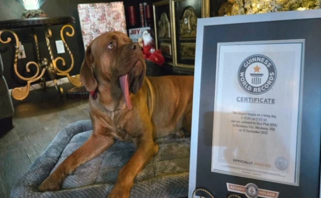 امریکا کے پالتو کتے نے لمبی زبان گینیز ورلڈ ریکارڈ قائم کر دیا۔امریکی ریاست اوکلاہوما سے تعلق رکھنے والے ایک خاندان کے پالتو کتے اوزی نے زندہ کتوں میں سب سے لمبی زبان (7.83 انچ) کا گینیز ورلڈ ریکارڈ اپنے نام کر لیا۔اس سے قبل یہ ریکارڈ ریاست الِینوائے کے شہر بلومنگٹن کے کتے راکی (5.46 انچ) کے پاس تھا۔ اس نے یہ ریکارڈ 2023 میں قائم کیا تھا۔کتے کی مالکن اینجلا پِک نے گینیز ورلڈ ریکارڈ سے گفتگو کرتے ہوئے کہا کہ جب سے ان کا کتا پیدا ہوا ہے تب سے اس کی زبان ہمیشہ باہر رہتی ہے۔ اس کا دو بار جانوروں کے ڈاکٹروں نے معائنہ کیا ہے لیکن اس کو کوئی طبی مسئلہ لاحق نہیں۔ بس اس کی زبان غیر معمولی طور پر لمبی ہے۔