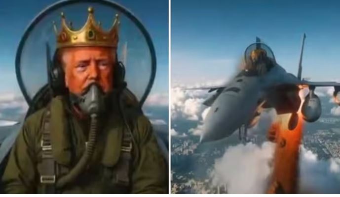 مظاہروں سے نمٹنے کیلئے ٹرمپ خود کنگ بن گئے، جنگی طیارے سے گندگی پھینکنے کی اے آئی ویڈیو شیئر کردی