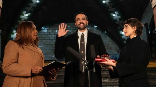 امریکا کے سب سے بڑے شہر نیویارک کے نو منتخب میئر زہران ممدانی نے یکم جنوری 2026 کو اپنے عہدے کا حلف اٹھا لیا اور وہ نیویارک کی تاریخ کے پہلے مسلم میئر بن گئے ہیں۔34 سالہ ڈیموکریٹ رہنما نے اپنی چار سالہ مدت کا آغاز آدھی رات کے فوراً بعد سٹی ہال کے نیچے واقع ایک بند سب وے اسٹیشن میں ایک سادہ تقریب کے دوران کیا۔غیر ملکی میڈیا کے مطابق زہران ممدانی نے حلف برداری کے دوران اپنا ہاتھ قرآن پاک پر رکھا۔ رپورٹس کے مطابق انہوں نے قرآن پاک کے دو نسخوں پر حلف اٹھایا، جن میں ایک ان کے دادا کا ذاتی نسخہ اور دوسرا نیویارک پبلک لائبریری کے شومبرگ سینٹر سے لیا گیا تھا۔حلف برداری کے بعد خطاب کرتے ہوئے زہران ممدانی نے کہا کہ نیویارک کے شہریوں کی خدمت ان کے لیے ایک اعزاز اور زندگی کا سب سے بڑا اعتمار ہے۔ انہوں نے کہا کہ سادہ مقام کا انتخاب محنت کش طبقے سے وابستگی اور عوامی ٹرانسپورٹ کی اہمیت کو اجاگر کرنے کے لیے کیا گیا۔اس تقریب میں نیویارک کی اٹارنی جنرل لیٹیشیا جیمز نے انہیں حلف دلایا جبکہ ان کی اہلیہ راما دواجی بھی موجود تھیں۔ میڈیا رپورٹس کے مطابق ممدانی کے والدین، معروف فلم ساز میرا نائر اور کولمبیا یونیورسٹی کے پروفیسر محمود ممدانی بھی اس موقع پر شریک تھے۔زہران ممدانی کی باضابطہ اور عوامی حلف برداری کی تقریب بعد میں سٹی ہال کے باہر منعقد کی جائے گی، جس میں سینیٹر برنی سینڈرز اور کانگریس وومن الیگزینڈریا اوکاسیو کورٹیز سمیت ہزاروں افراد کی شرکت متوقع ہے۔زہران ممدانی نے اپنی انتخابی مہم کے دوران مہنگائی، کرایوں میں اضافے اور شہری سہولتوں کو مرکزی نکتہ بنایا تھا۔ انہوں نے کرایوں میں اضافے پر پابندی، مفت بس سروس اور بچوں کی نگہداشت کی سہولتوں کا وعدہ کیا ہے۔