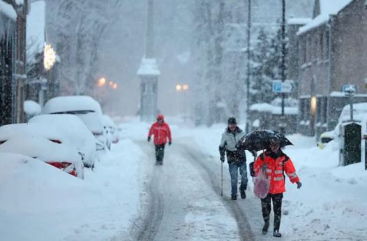 برطانیہ میں شدید سردی ، برف باری اور یخ بستہ ہواؤں کی وارننگ جاری کی گئی ہے۔ برطانیہ میں شدید سردی اور برف باری کے باعث ہزاروں افراد اب بھی بجلی سے محروم ہیں۔ ملک کے بیشتر حصوں میں یلو وارننگ جاری کی گئی ہے جبکہ اسکاٹ لینڈ اور شمالی انگلینڈ میں بھی اسی نوعیت کی وارننگ آج کے لیے بھی جاری کی گئی ہے۔ میڈیا رپورٹس میں بتایا جارہا ہے کہ 12 کاؤنٹیز میں 11 انچ برف باری کا امکان ہے۔محکمہ موسمیات کے مطابق 15 جنوری کو پورے برطانیہ میں موسمِ سرما کی شدت بڑھ جائے گی، سب سے زیادہ برف باری وسطی اور شمالی اسکاٹ لینڈ میں متوقع ہے۔