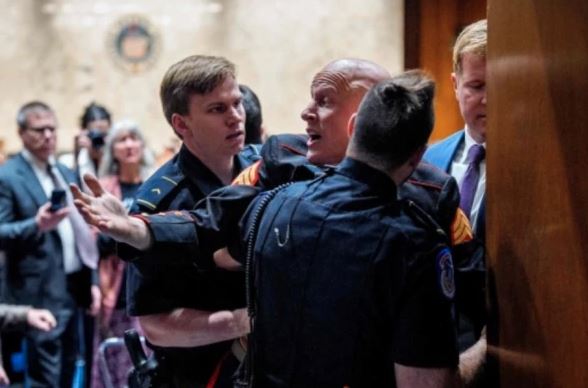 ’کوئی اسرائیل کے لیے لڑنا نہیں چاہتا‘ سینیٹ میں نعرہ لگانے والے سابق امریکی میرین کو پولیس نے باہر نکال دیا