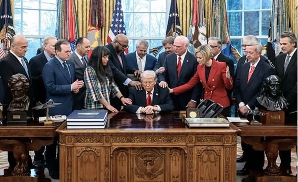 ایران جنگ میں ٹرمپ کو سہارا دینے کیلیے پادری اوول آفس پہنچ گئے؛ دعائیہ ویڈیو وائرل