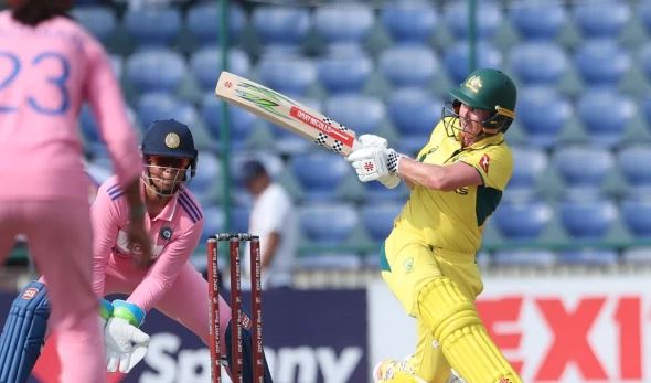 بھارتی ویمنز ٹیم کو پنک کٹ راس نہ آئی، آسٹریلیا نے تیسرے ون ڈے میں 412 رنز کا پہاڑ کھڑا کردیا۔دہلی میں کھیلے گئے میچ میں آسٹریلیا ویمنز ٹیم نے ٹاس جیت کر پہلے بیٹنگ کرنے کا فیصلہ کیا اور ابتداء سے ہی جارحانہ انداز اپنایا۔بیتھ مونی نے 57 گیندوں پر سنچری بناکر ویمنز ون ڈے میں دوسری تیز ترین سنچری کا ریکارڈ برابر کردیا۔انہوں نے 75 گیندوں 23 چوکوں اور ایک چھکے کی مدد سے 138 رنز کی شاندار اننگز کھیلی۔ جارجیا وول 81 اور ایلس پیری 68 رنز بناکر نمایاں رہیں۔آسٹریلیا کی پوری ٹیم 47.5 اوورز میں 412 رنز بناکر آؤٹ ہوگئی۔واضح رہے کہ بھارتی ویمنز ٹیم نے میچ میں بریسٹ کینسر سے آگاہی مہم کے طور پر پنک کٹ پہنی تھی۔